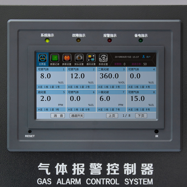 氣體報警控制器連接氣體探測器可持續(xù)監(jiān)測環(huán)境中的有毒有害氣體,根據(jù)接收到的輸入信號顯示被測氣體的濃度,并可通過Rs485數(shù)字信號與上位機通訊。控制器可設(shè)定二級報警值,當(dāng)監(jiān)測到被測氣體濃度超標(biāo)時根據(jù)不同的報警級別發(fā)出聲光信號示警。數(shù)據(jù)記錄、報警記錄、系統(tǒng)日志以及報警通道均可通過菜單查詢,并可通過繼電器輸出來控制外部設(shè)備,如排風(fēng)系統(tǒng)或其它外部設(shè)備。
